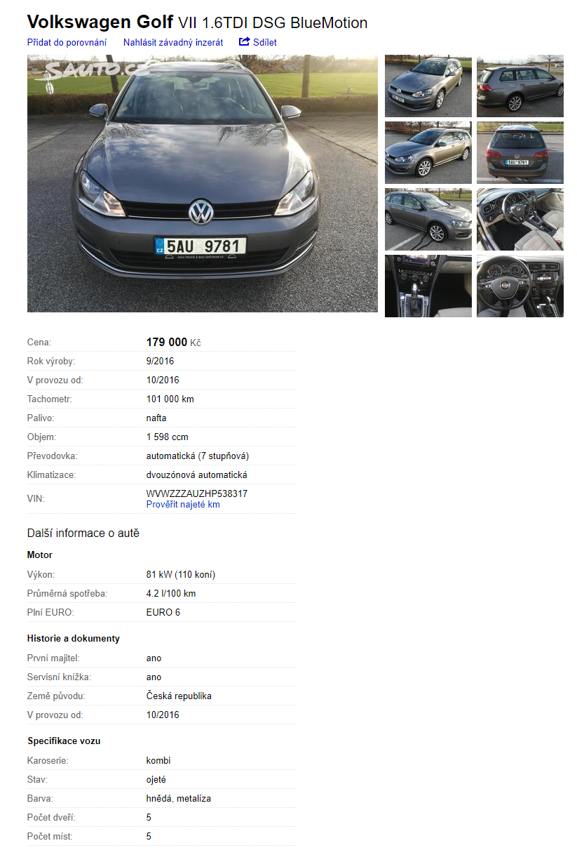 | Autobazar Jahoda | Česká republika | Škoda | Octavia | 99990 | Kontrola tachometru |
