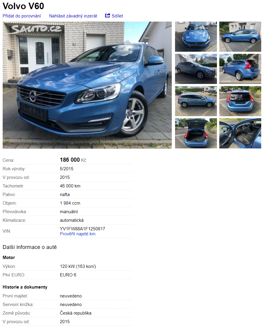 | Anton Mayr | Německo | +420 608 766 102 | antonn.mayr@gmail.com | Volvo | V60 | 186 000 Kč | inzerat e-mail1 e-mail2 e-mail3 |
