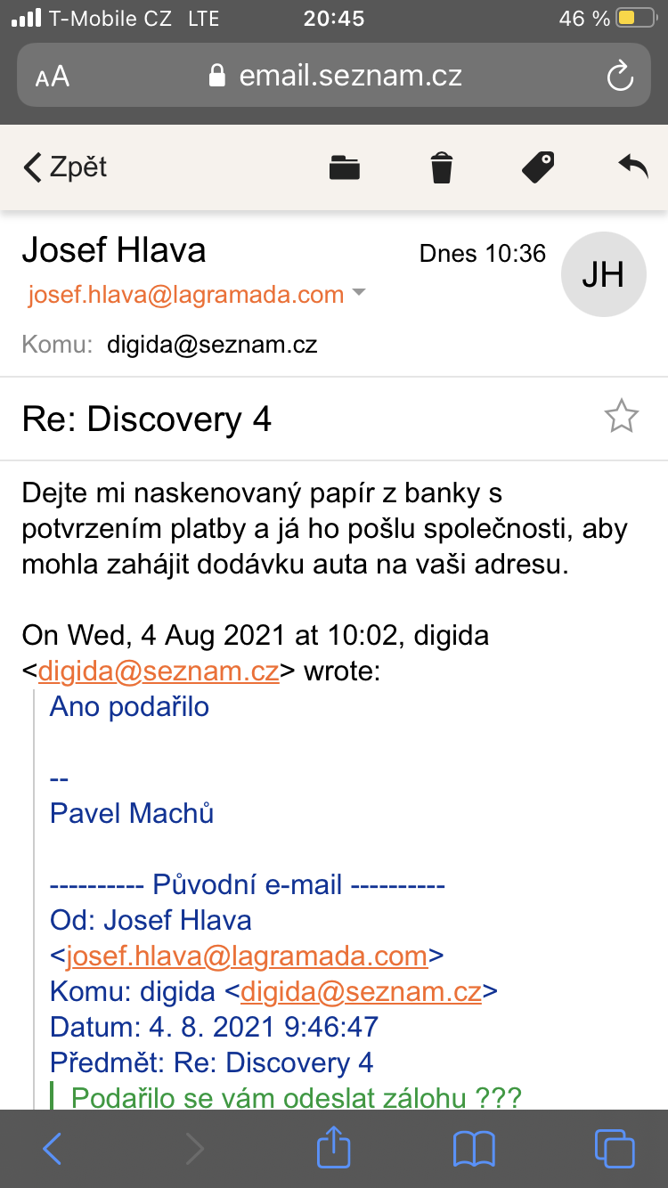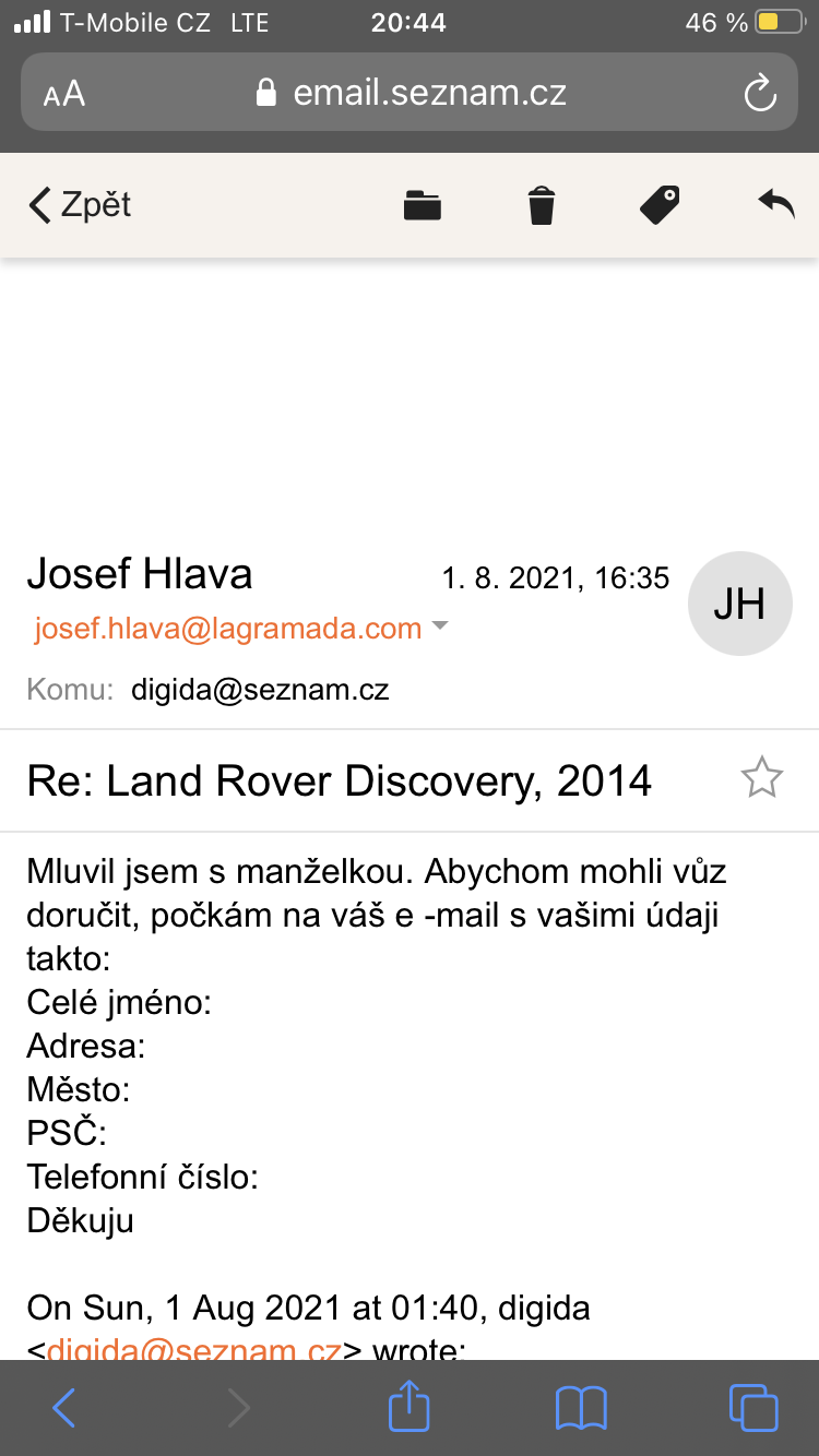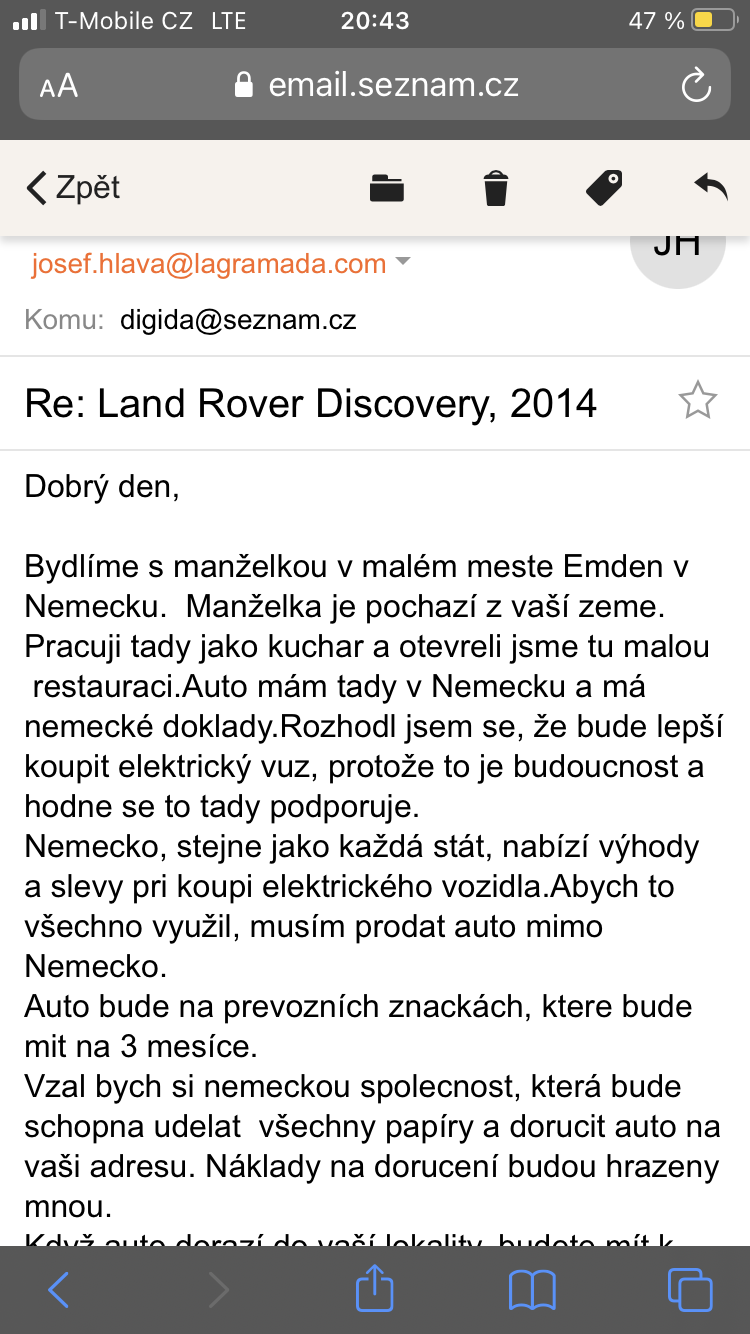 | Josef Hlava | Německo | +49 157 81473632 | josef.hlava@lagramada.com | Land Rover | Discovery | 360 000 Kč | BoxCar GMBH | F22543DC-4B7C-46AB-8C3C-6E6E7112949B.png 8A82A139-E465-40F0-926B-78EA90250B3A.png D90E2F9C-6A81-4E66-B3C6-A36FB3FE0577.png C1046D85-1B23-4B83-8E66-869167476B3A.png 6AE2A221-F028-42A9-AC02-DA4146295851.png 63C9E891-230D-4A70-ABAD-FD47E5D30A16.png 6022BC9B-F01B-4E5C-AA1F-DE502701B884.png 0D8BD479-3FFF-4AF3-B48D-0C17152B5D1E.png 784A52CF-6775-441A-A374-A1A345A7AD91.png 126AB157-1B63-417D-973F-5D92E17570BD.png 5AD2A39C-3E40-470C-932C-39560AD2E746.png BEE9CFCD-47F7-463B-B812-8E5B84FE72A0.png |