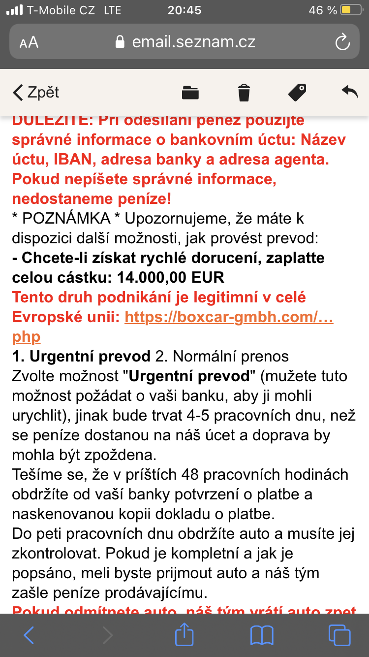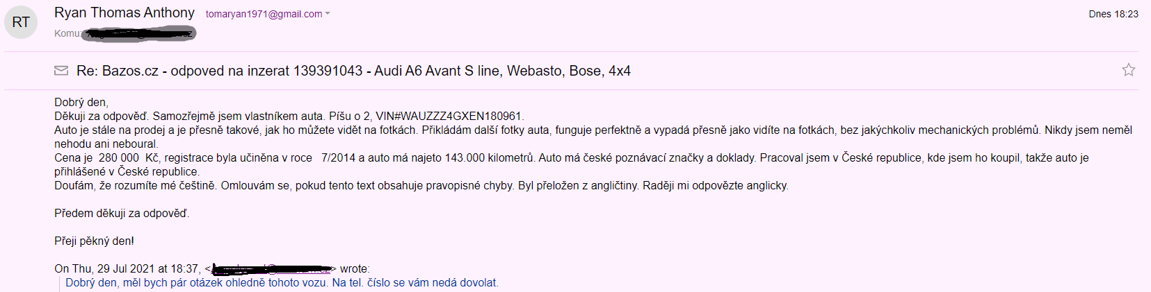 | Ryan Thomas Anthony | Česko | tomaryan1971@gmail.com | Audi | A6 | 1TI1701 | 280000 | podvodnik.png |