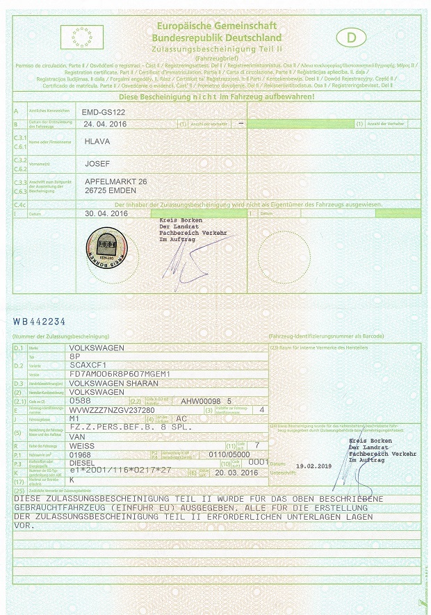 | Josef Hlava | Německo | +4915781473632 | josef.hlava@gmail.com | VW | Sharan | EMD-GS122 | 242000 kč | BoxCar GMBH | Technicak VW Sharan Highline |